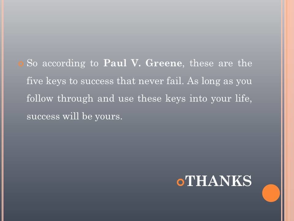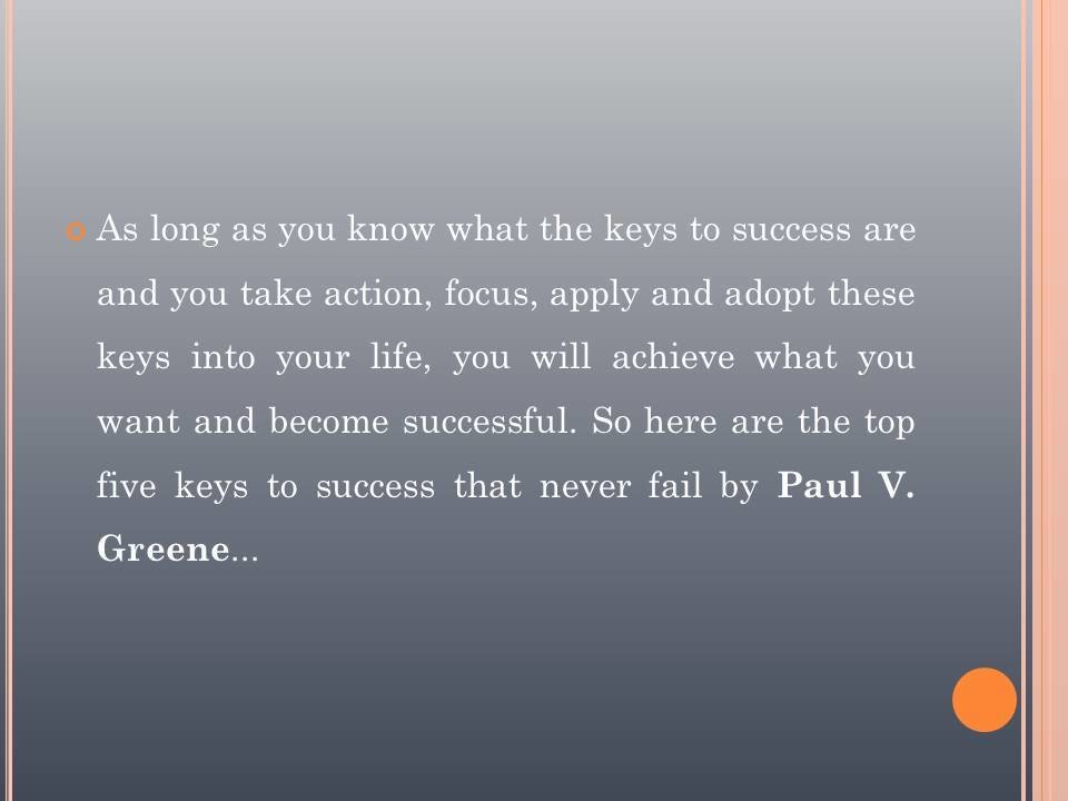 Paul V. Greene - What Are the Keys to Success? In this post, I would like to mention 5 of the main keys to achieving success.