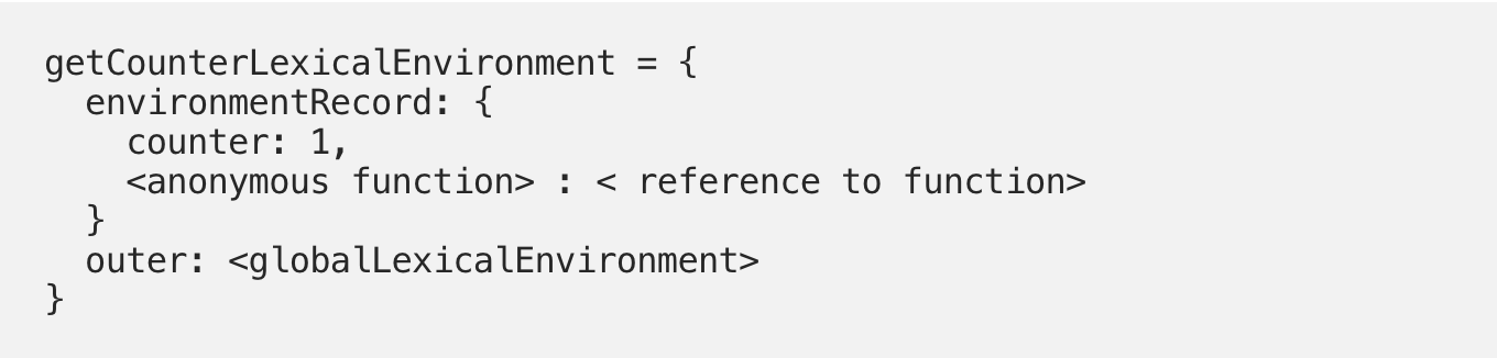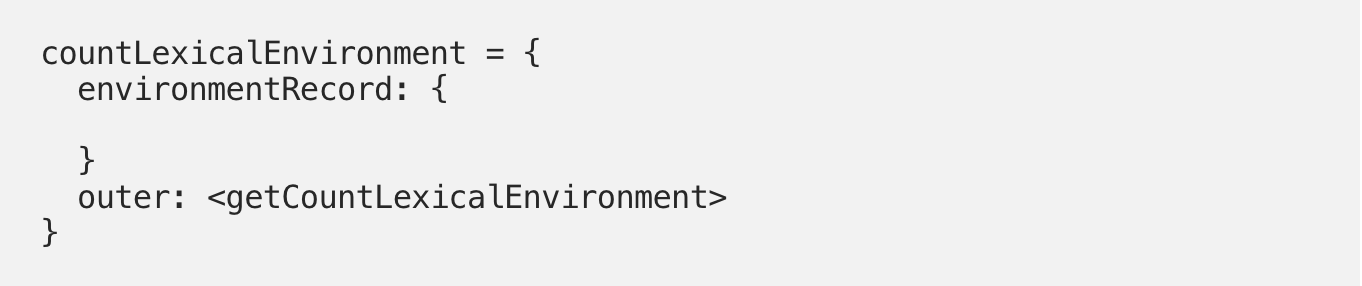 Таким образом, лексическое окружение для функции getCounterпосле первого вызова функции count будет выглядеть таким образом: