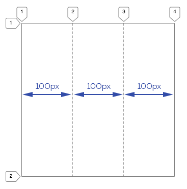 Ты будешь иметь три столбца, каждый шириной 100px.