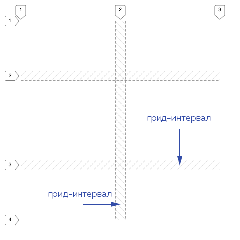 Интересная особенность грид-интервалов: они не появляются между краями контейнера и крайними элементами. То есть это пустые пространства между элементами только изнутри грида.