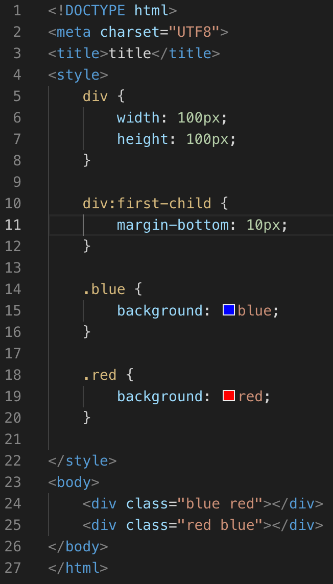 - селекторы типов элементов (например, h1) и псевдоэлементов (например, ::before).