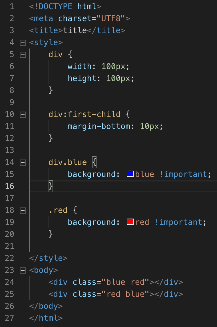 Когда при объявлении стиля используется модификатор !important, это объявление получает наивысший приоритет среди всех прочих объявлений. Хотя технически модификатор !important не имеет со специфичностью ничего общего, он непосредственно на неё влияет. Поскольку !important усложняет отладку, нарушая естественное каскадирование ваших стилей, он не приветствуется и следует избегать его использования. Если к элементу применимы два взаимоисключающих стиля с модификатором !important, то применен будет стиль с большей специфичностью.