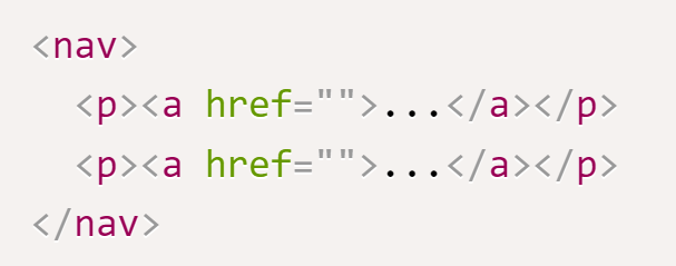 Предназначен для создания блока навигации веб-страницы или всего веб-сайта, при этом не обязательно должен находиться внутри <header>. На странице может быть несколько элементов <nav>. Не заменяет теги <ul> или <оl>, он просто их обрамляет. Не все группы ссылок на странице должны быть обёрнуты <nav>, этот элемент предназначен в первую очередь для разделов, которые состоят из главных навигационных блоков.