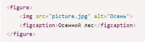 Элемент <figure> представляет автономный контент (необязательно с заголовком), являющийся самостоятельным элементом основного потока. Элемент может быть перемещен из основного содержимого документа в боковую колонку или приложение, не затрагивая поток документа. С помощью элемента <figure> можно добавлять краткие характеристики к иллюстрациям, фотографиям, диаграммам, фрагментам кода и т.д..