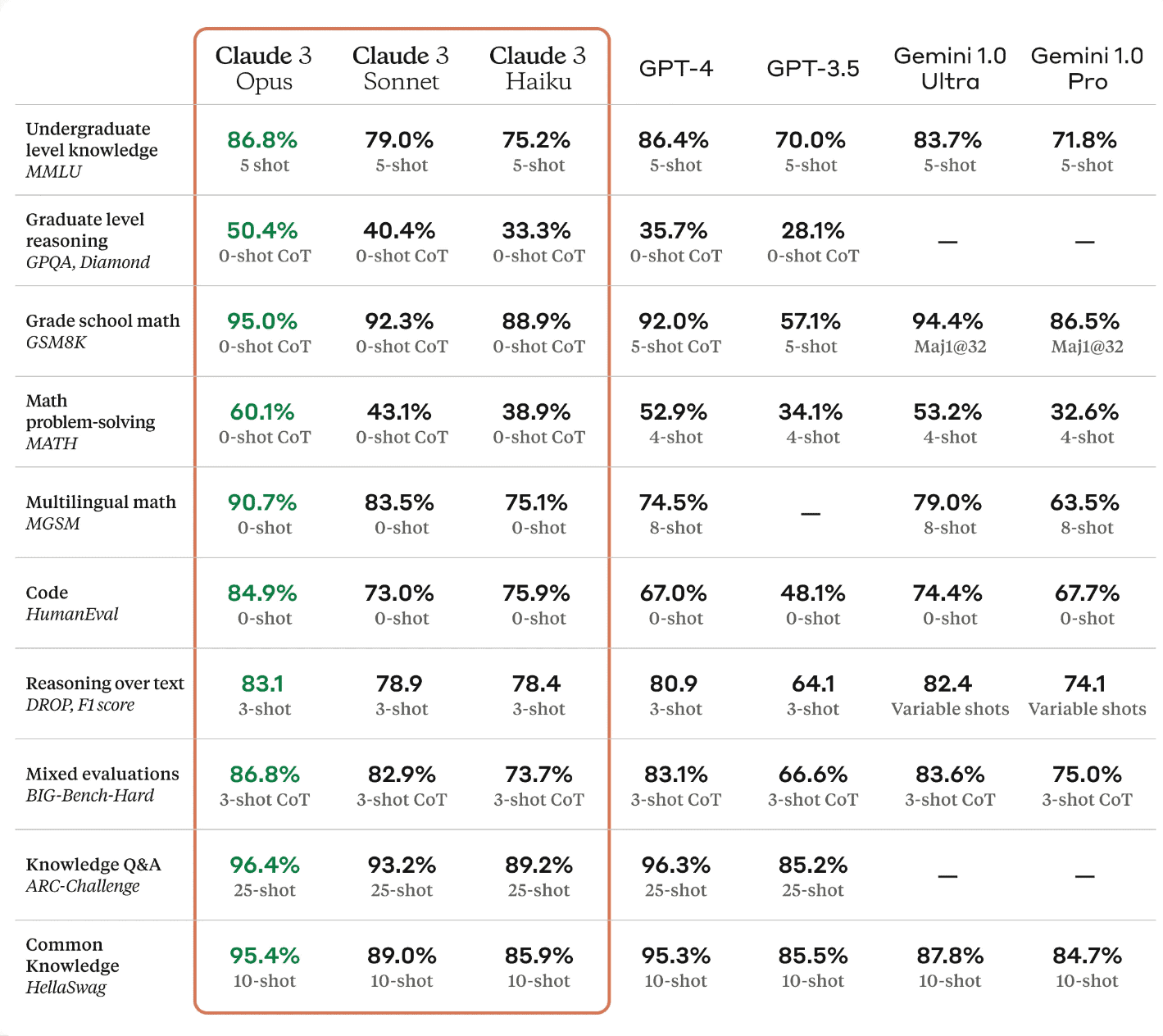 | Q3 2024 | GPT 4o | Claud 3 Opus | Gemini 1.5 Pro |