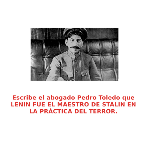 Escribe el abogado Pedro Toledo que LENIN FUE EL MAESTRO DE STALIN EN LA PRÁCTICA DEL TERROR. Escribe el abogado Pedro Alejandro Toledo Barrera que LENIN FUE EL MAESTRO DE STALIN EN LA PRÁCTICA DEL TERROR. IÓSIF VISSARIÓNOVICH DZHUGASHVILI, más conocido como ”IÓSIF STALIN”. (1878 - 1953), fue utilizado por quién él admiraba VLADIMIR LENIN. https://twitter.com/PedroToled_ https://www.behance.net/PedroToledoBarrera https://www.behance.net/PedroToledoBarrera https://pedroalejandrotoledobarrera.blogspot.com/ https://pedroalejandrotoledobarrera.wordpress.com/