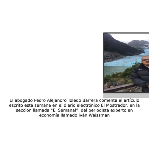 El abogado Pedro Alejandro Toledo Barrera comenta el artículo escrito esta semana en el diario electrónico El Mostrador, en la sección llamada “El Semanal”, del periodista experto en economía llamado Iván Weissman. https://e27.co/user/pedro.alejandro.toledo.barrera https://medium.com/@pedroalejandrotoledobarrera https://twitter.com/PedroToled_