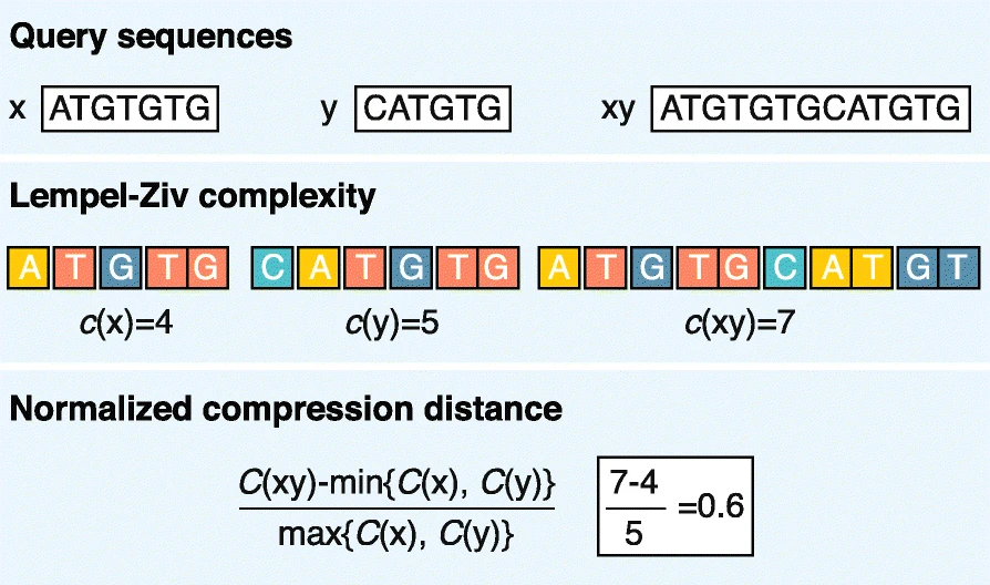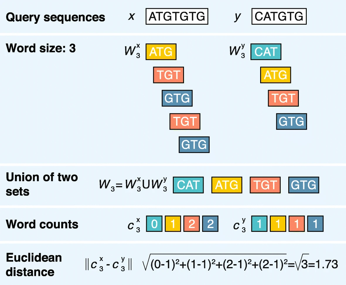 - Any method of quantifying sequence similarity/dissimilarity that does not use or produce alignment at any step of algorithm application.