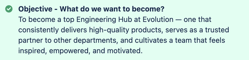 Goal: Get serious about how and what we do — mature into a world-class engineering hub that drives excellence, not just delivery.