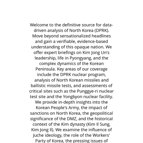Website: https://www.youtube.com/@PeninsulaAnalytics. Welcome to the definitive source for data-driven analysis of North Korea (DPRK). Move beyond sensationalized headlines and gain a verifiable, evidence-based understanding of this opaque nation. We