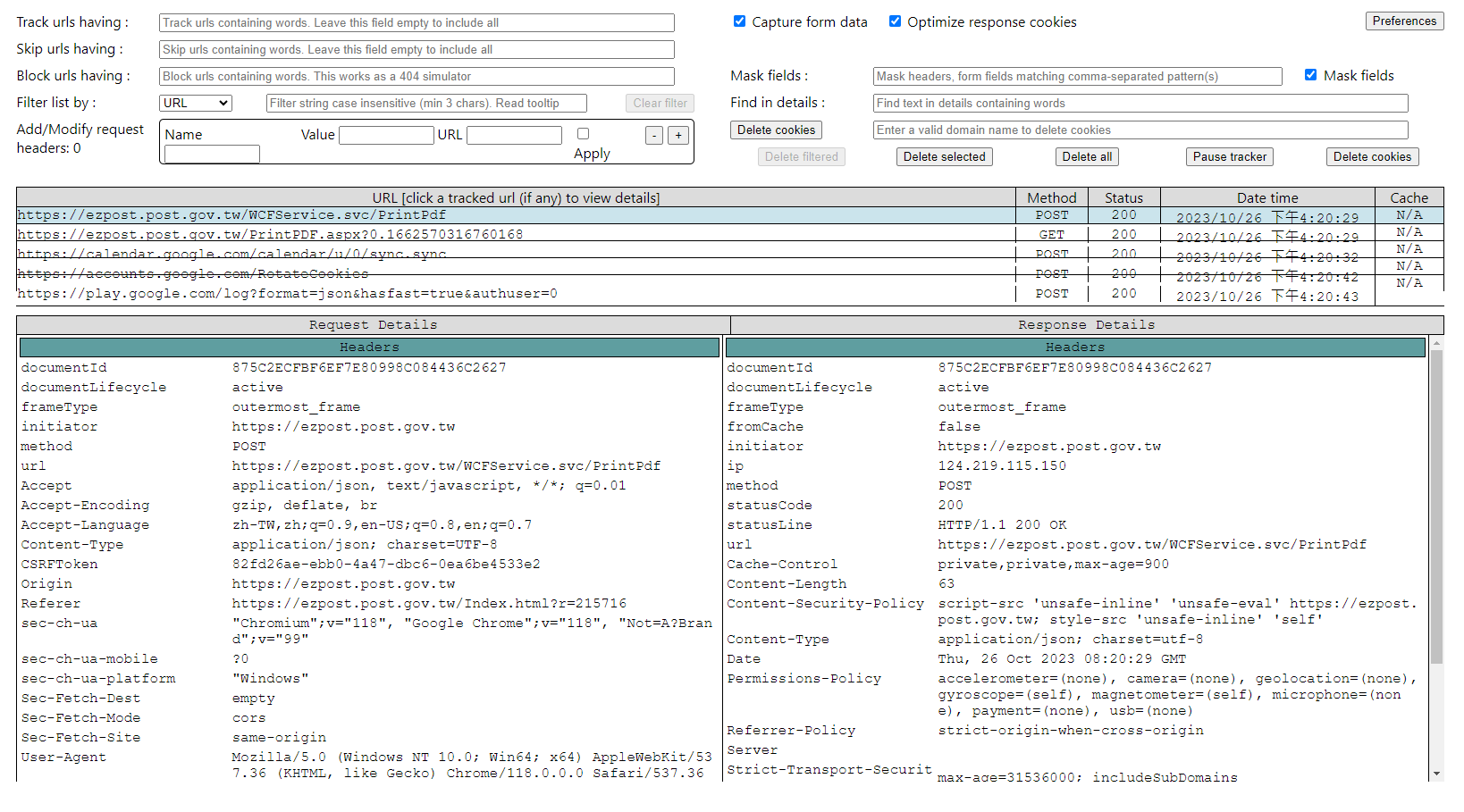how to analyse HTTP requests via the AJAX technique