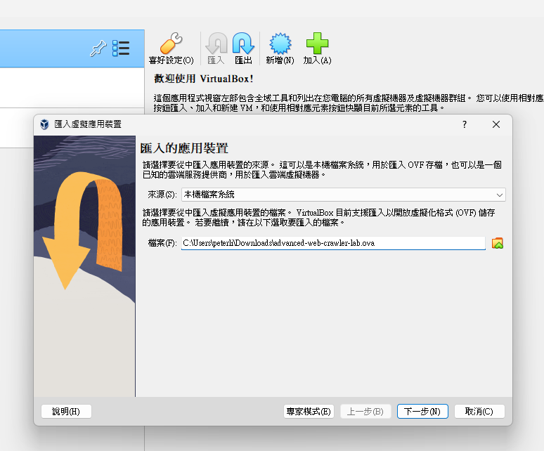 Export the OVA file to the VirtualBox
