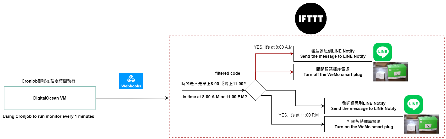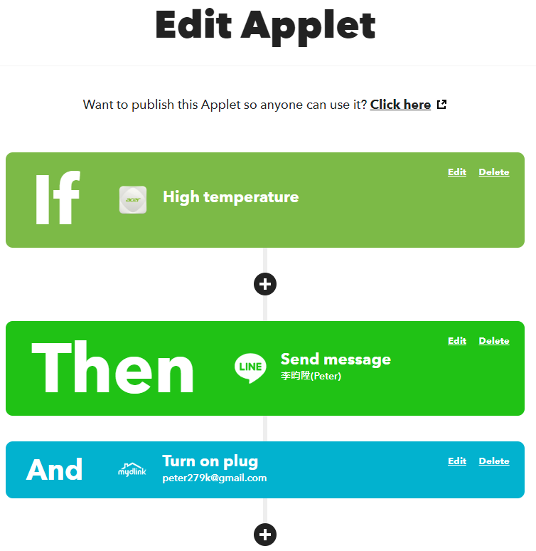 The demonstration for Integrating the IoT devices with IFTTT