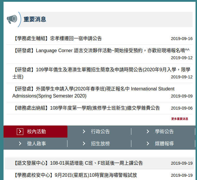 $latestNews = 'https://www.nttu.edu.tw/app/index.php?Action=mobileassocgmolist';