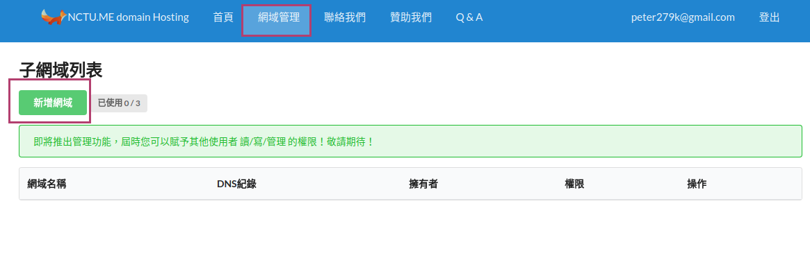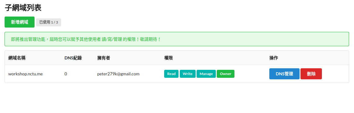 - 子網域是網域的延伸,可以指向某個IP位址與目錄