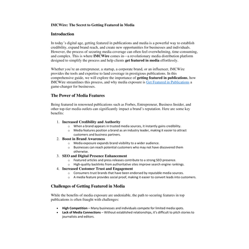 IMCWire: The Best Way to Get Featured in Publications and Media