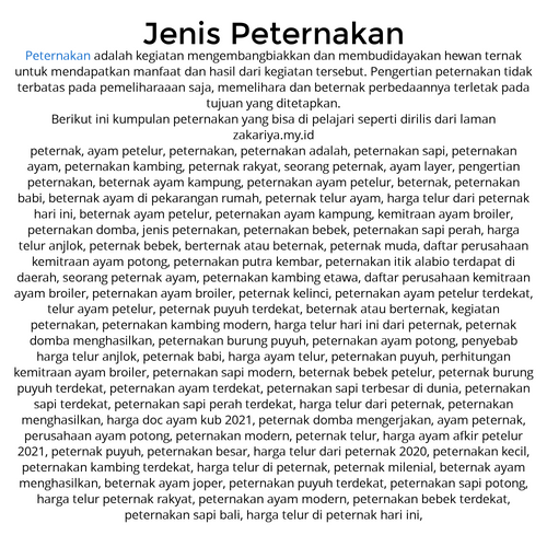 Peternakan adalah kegiatan mengembangbiakkan dan membudidayakan hewan ternak untuk mendapatkan manfaat dan hasil dari kegiatan tersebut. Pengertian peternakan tidak terbatas pada pemeliharaaan saja, memelihara dan beternak perbedaannya terletak pada tujuan yang ditetapkan. Berikut ini kumpulan peternakan yang bisa di pelajari seperti dirilis dari laman zakariya.my.id Jenis Peternakan: peternak, ayam petelur, peternakan, peternakan adalah, peternakan sapi, peternakan ayam, peternakan kambing, peternak rakyat, seorang peternak, ayam layer, pengertian peternakan, beternak ayam kampung, peternakan ayam petelur, beternak, peternakan babi, beternak ayam di pekarangan rumah, peternak telur ayam, harga telur dari peternak hari ini, beternak ayam petelur, peternakan ayam kampung, kemitraan ayam broiler, peternakan domba, jenis peternakan, peternakan bebek, peternakan sapi perah, harga telur anjlok, peternak bebek, berternak atau beternak, peternak muda, daftar perusahaan kemitraan ayam potong, peternakan putra kembar, peternakan itik alabio terdapat di daerah, seorang peternak ayam, peternakan kambing etawa, daftar perusahaan kemitraan ayam broiler, peternakan ayam broiler, peternak kelinci, peternakan ayam petelur terdekat, telur ayam petelur, peternak puyuh terdekat, beternak atau berternak, kegiatan peternakan, peternakan kambing modern, harga telur hari ini dari peternak, peternak domba menghasilkan, peternakan burung puyuh, peternakan ayam potong, penyebab harga telur anjlok, peternak babi, harga ayam telur, peternakan puyuh, perhitungan kemitraan ayam broiler, peternakan sapi modern, beternak bebek petelur, peternak burung puyuh terdekat, peternakan ayam terdekat, peternakan sapi terbesar di dunia, peternakan sapi terdekat, peternakan sapi perah terdekat, harga telur dari peternak, peternakan menghasilkan, harga doc ayam kub 2021, peternak domba mengerjakan, ayam peternak, perusahaan ayam potong, peternakan modern, peternak telur, harga ayam afkir petelur 2021, peternak puyuh, peternakan besar, harga telur dari peternak 2020, peternakan kecil, peternakan kambing terdekat, harga telur di peternak, peternak milenial, beternak ayam menghasilkan, beternak ayam joper, peternakan puyuh terdekat, peternakan sapi potong, harga telur peternak rakyat, peternakan ayam modern, peternakan bebek terdekat, peternakan sapi bali, harga telur di peternak hari ini, peternakan kerbau, peternakan domba garut terbesar, di peternakan sapi, peternakan besar adalah, peternakan sapi menghasilkan, peternakan babi modern, peternak bebek petelur, peternakan domba garut, pengusaha ayam, seorang peternak memelihara 120 ekor ayam, harga bibit domba dorper, peternak telur bebek, peternakan adalah kegiatan, peternak entok, peternakan burung, peternakan ayam terbesar di dunia, peternakan telur ayam terdekat, peternak pekerjaannya, peternak ayam menghasilkan, peternakan ayam potong terdekat, peternakan perkutut, beternak kambing menghasilkan, peternak kuda, pengertian dari peternakan, peternakan itik, kemitraan ayam, beternak ayam potong, kemitraan bebek pedaging, perusahaan peternakan ayam, pengusaha ayam petelur, peternakan contohnya, peternak ayam joper, peternakan ayam kalkun, sistem kemitraan ayam broiler, peternakan sapi adalah, harga telur peternak hari ini, website peternakan, pengusaha ayam potong, harga telur ayam anjlok, peternakan ayam pedaging, peternakan ayam adalah, perusahaan kemitraan ayam broiler, kemitraan ayam broiler pokphand, beternak bebek pedaging, peternakan sapi limosin, peternakan kalkun, harga telur dari peternak langsung, peternakan ayam broiler terdekat, harga telur ayam dari peternak, peternak telur omega 3, harga telur ayam dari peternak hari ini, harga doc ayam broiler 2021, harga telur dari peternak 2021, beternak ayam kub, peternak ayam telur, peternakan kambing perah, harga telur turun drastis, peternakan kambing boer, kemitraan ayam broiler charoen pokphand, dunia peternakan, peternak cerdas, peternak ayam aduan, peternakan ayam yudistira, peternak ayam pelung, peternakan susu sapi, penjual ayam petelur terdekat, kemitraan ayam potong, beternak ayam dapat menghasilkan, beternak burung puter pelung, sapi peternakan, peternakan ayam close house, peternak ayam cemani, peternak perkutut bangkok, peternak bebek peking, afkir adalah ayam, beternak ayam kalkun, perusahaan ayam broiler, beternak ayam jawa, peternakan yang menguntungkan, peternak ayam kub, harga ayam dari peternak, kemitraan peternakan, beternak bebek peking, peternakan ayam petelur modern, pengusaha ayam kampung, peternak kodok di bogor, peternakan bebek peking, pengusaha peternakan, keuntungan peternakan ayam, peternak buang telur, peternak telur puyuh terdekat, peternakan ayam organik, peternak kambing menghasilkan, beternak kalkun, harga telur anjlok hari ini, kemitraan ayam pullet, peternak ayam plucker, beternak ayam tradisional adalah, peternak bebek bangkrut, peternakan susu, peternak indonesia di new zealand, peternak ayam yudistira terdekat, peternak ayam shamo, em4 peternakan ayam petelur, beternak ayam pedaging, harga ayam potong dari peternak hari ini, keuntungan beternak ayam, peternakan ayam pelung, perusahaan peternakan sapi, peternakan luar negeri, kemitraan ayam charoen pokphand, peternak sapi perah untuk diambil, harga ayam petelur 2021, harga ayam potong dari peternak, beternak ayam petelur pemula, kemitraan sapi, kemitraan ayam broiler japfa, harga livebird ayam, peternak telur puyuh, peternakan domba dorper, peternakan sapi terbesar, peternakan domba terbesar di dunia, harga ayam di peternak hari ini, beternak ayam arab, peternakan walet, peternakan ayam putra kembar, peternak ayam pakhoy, kemitraan sapi potong, peternak sapi indonesia di new zealand, beternak atau beternak, peternak bebek pedaging, beternak sapi bali, kemitraan peternakan ayam, peternakan sapi luar negeri, peternak ayam mangon, peternakan tradisional, peternak kalkun terdekat, peternakan burung walet, peternak maggot, peternakan domba terdeka