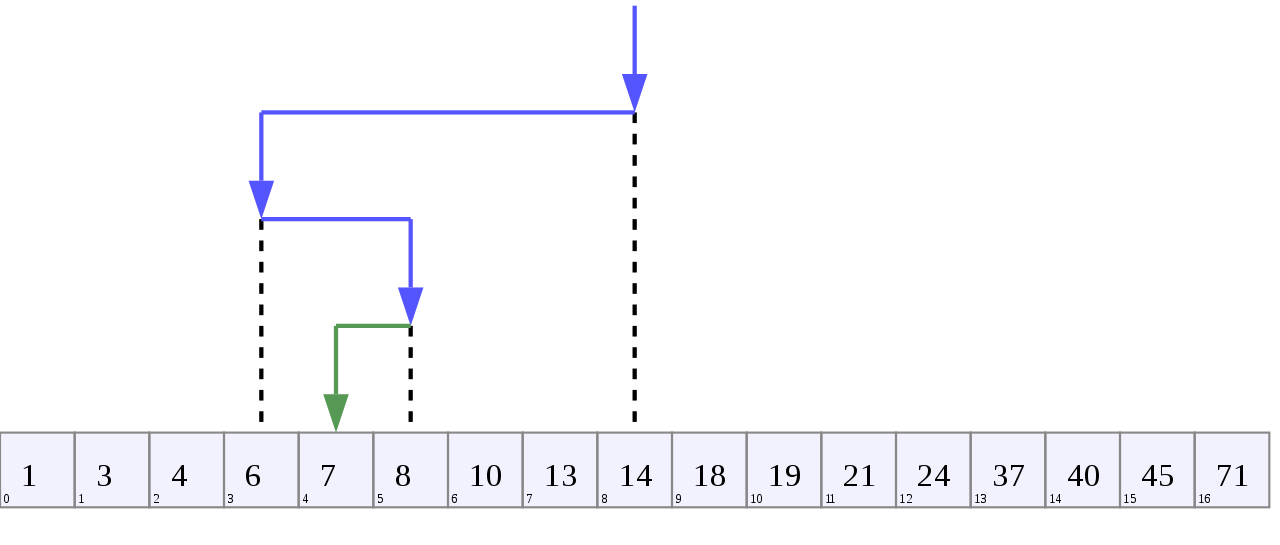 int array[] = {1, 3, 4, 6, 7, 8, 10, 13, 14, 18, 19, 21, 24, 37, 40, 45, 71};
