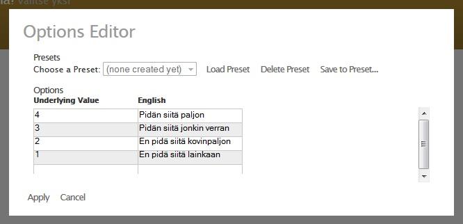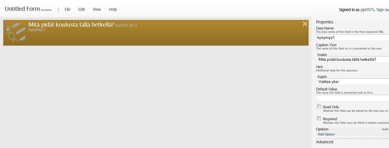 Kun olet tehnyt kaikki haluamasi kentät tallenna lomake nimelle "KyselyOmaNimi" ( Ylävalikosta Save )