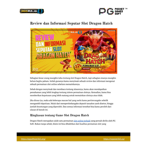 Sebagian besar orang mungkin tahu tentang slot Dragon Hatch, tapi sebagian sisanya mungkin belum begitu paham. Inilah gunanya kamu menyimak sebuah review dan informasi mengenai sebuah permainan slot online sebelum memainkannya.