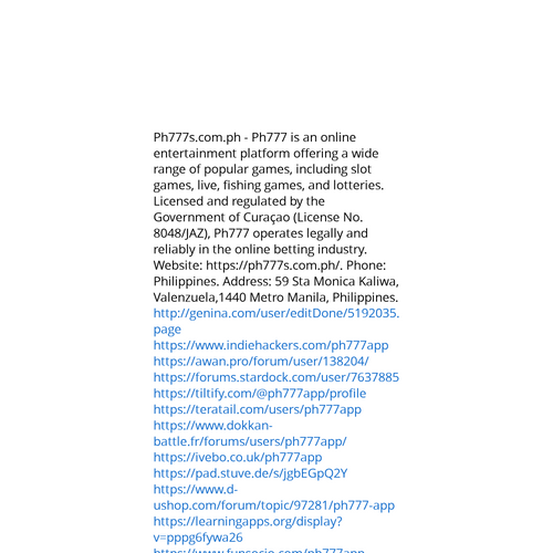 Website: https://ph777s.com.ph/. Ph777s.com.ph - Ph777 is an online entertainment platform offering a wide range of popular games, including slot games, live, fishing games, and lotteries. Licensed and regulated by the Government of Curaçao (License