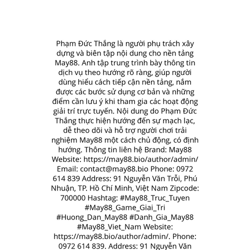 Website: https://may88.bio/author/admin/. Phạm Đức Thắng là người phụ trách xây dựng và biên tập nội dung cho nền tảng May88. Anh tập trung trình bày thông tin dịch vụ theo hướng rõ ràng, giúp người dùng hiểu cách tiếp cận nền tảng, nắm được các bước
