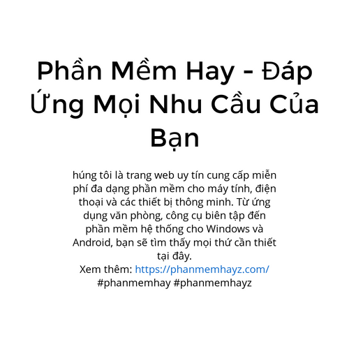 Website: https://phanmemhayz.com/ Phần Mềm Hay là một Website uy tín cung cấp miễn phí các phần mềm văn phòng, biên tập, windows, android cùng với những thủ thuật máy tính hữu ích. Phone: 0982735149 Address: Số 9 Ngõ 198 Thái Hà, Trung Liệt, Đống Đa,