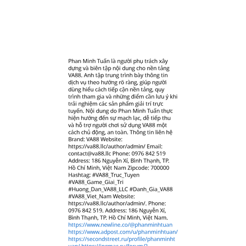Website: https://va88.llc/author/admin/. Phan Minh Tuấn là người phụ trách xây dựng và biên tập nội dung cho nền tảng VA88. Anh tập trung trình bày thông tin dịch vụ theo hướng rõ ràng, giúp người dùng hiểu cách tiếp cận nền tảng, quy trình tham gia