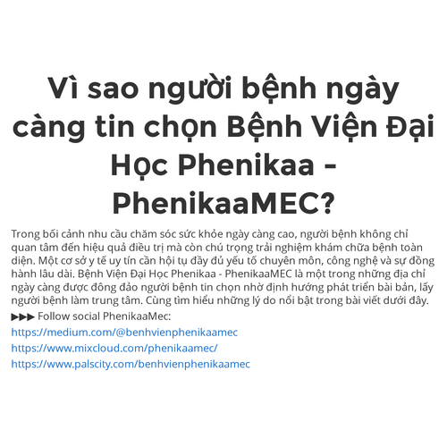 Vì sao người bệnh ngày càng tin chọn Bệnh Viện Đại Học Phenikaa - PhenikaaMEC?