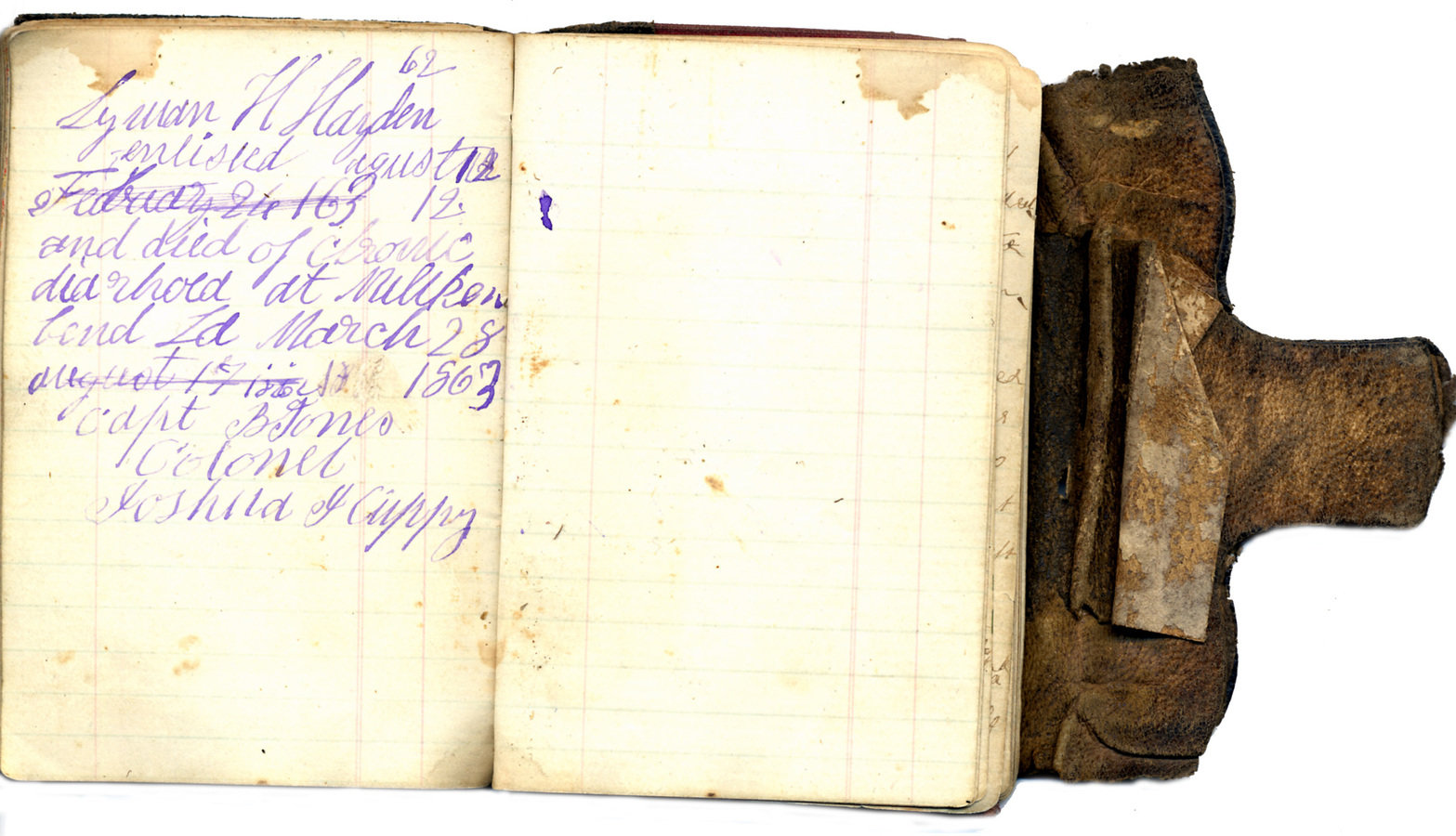 On the page preceding the actual diary in what appears to be Hayden’s handwriting are the words: “Henry J. Hayden enlisted February 24, 1864 in Madison in Co. A. in the 2nd Army Corps 2d Division under Capt Wm Hamill (Hamilton) Colonel Frank Haskel” and then in different handwriting and different ink: “and was killed in a charge June 18 1864 Petersburg, VA.”
