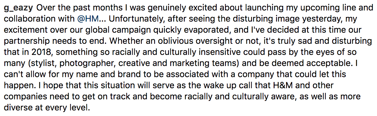 Celebrities G-Eazy and The Weeknd expressed their dislike for the photo in question and announced that they would not be working with the brand in the future