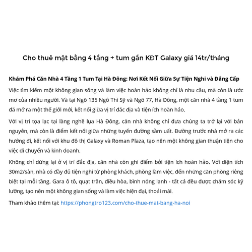 Việc tìm kiếm một không gian sống và làm việc hoàn hảo không chỉ là nhu cầu, mà còn là ước mơ của nhiều người. Và tại Ngõ 135 Ngô Thì Sỹ và Ngõ 77, Hà Đông, một căn nhà 4 tầng 1 tum đã mở ra một thế giới mới, kết nối giữa vị trí đắc địa và tiện ích hoàn hảo.