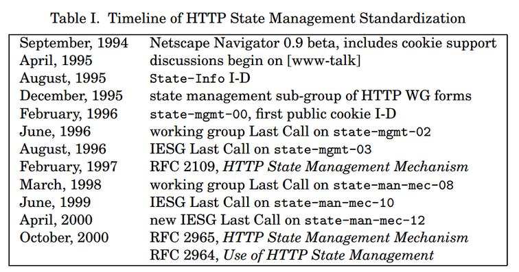 Cookies are introduced by Netscape, enabling session state, shopping carts, and later ad tracking.