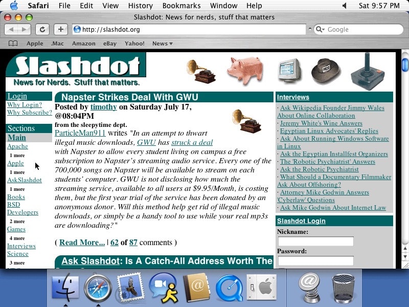 Apple Safari is introduced as default for macOS, replacing Internet Explorer for Mac.
