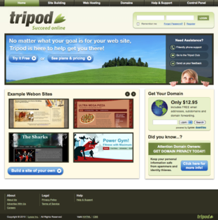 Tripod starts as a student community and grows into a homepage builder.