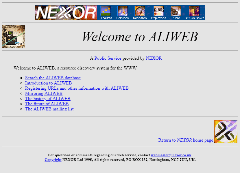Early web search tools: ALIWEB, WebCrawler, Lycos, Infoseek, Excite.