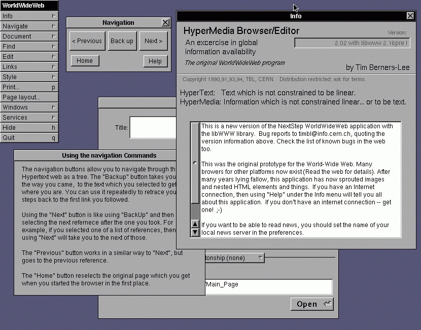 Tim Berners-Lee creates the first web browser (WorldWideWeb) and the first website.