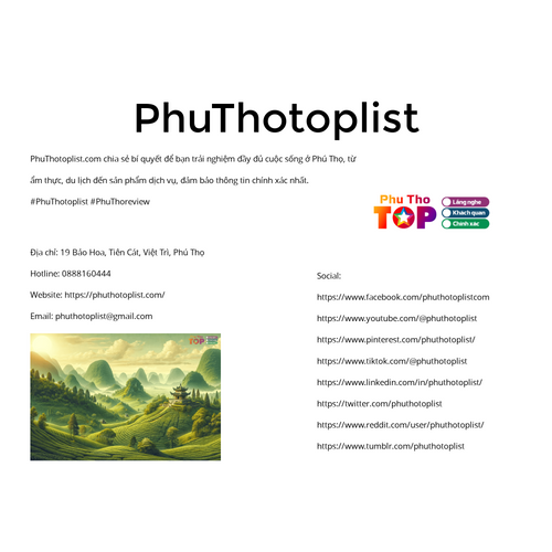 PhuThotoplist.com là cộng đồng đánh giá và xếp hạng uy tín tại Phú Thọ. #PhuThotoplist | Website: https://phuthotoplist.com/ | Facebook: https://www.facebook.com/phuthotoplistcom