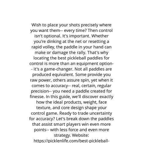 Website: https://picklenlife.com/best-pickleball-paddles-for-control/. Wish to place your shots precisely where you want them-- every time? Then control isn't optional. It's important. Whether you're dinking at the net or resetting a rapid volley, th