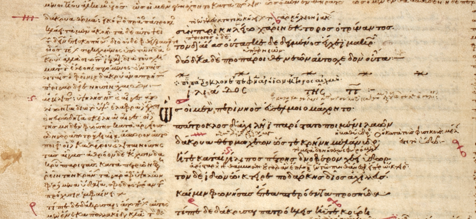 The opening of Book 16 of the Iliad in the Townley Homer (London, British Library, MS Burney 86, f. 170v). - See more at: http://britishlibrary.typepad.co.uk/digitisedmanuscripts/2013/08/page/2/#sthash.2PQ22ROa.dpuf