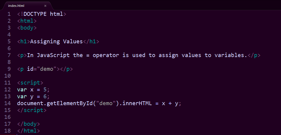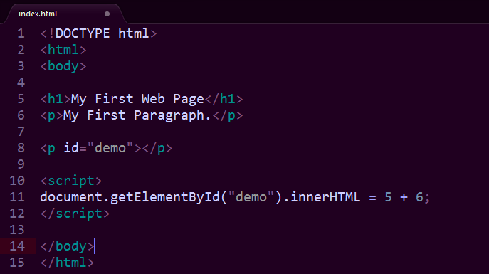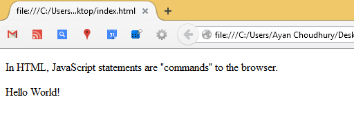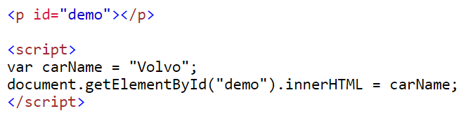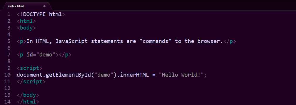 The statement tells that the browser to write "Hello World" inside an HTML element with id="demo"
