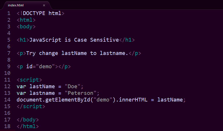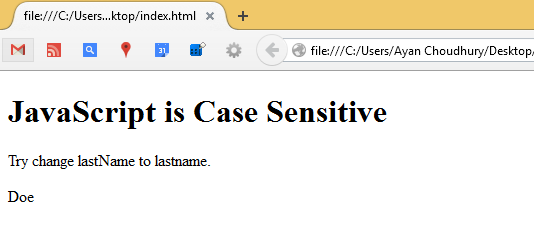 The variable 'lastName' and 'lastname' are two different variables as all the JavaScript identifiers are Case Sensitive