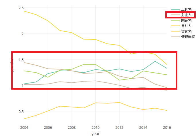 3.財金系是這幾年左右管院性別比的重要因素!