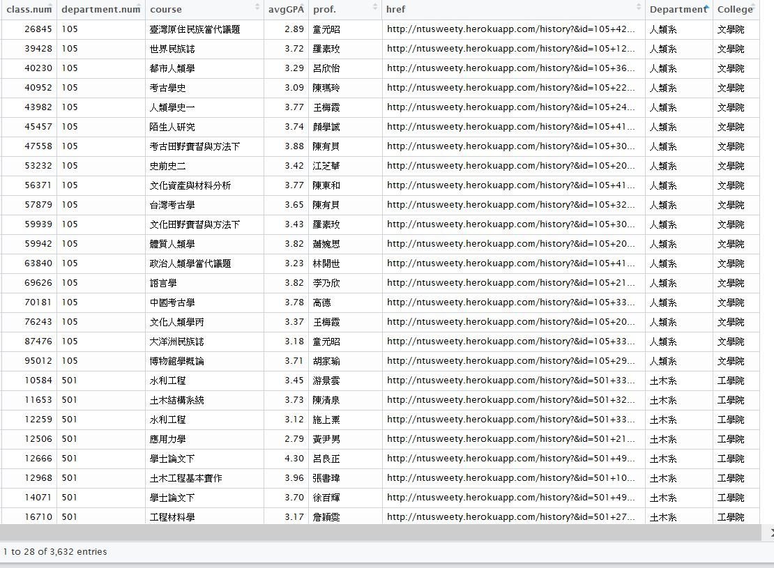 取出課程、平均GPA、課號etc