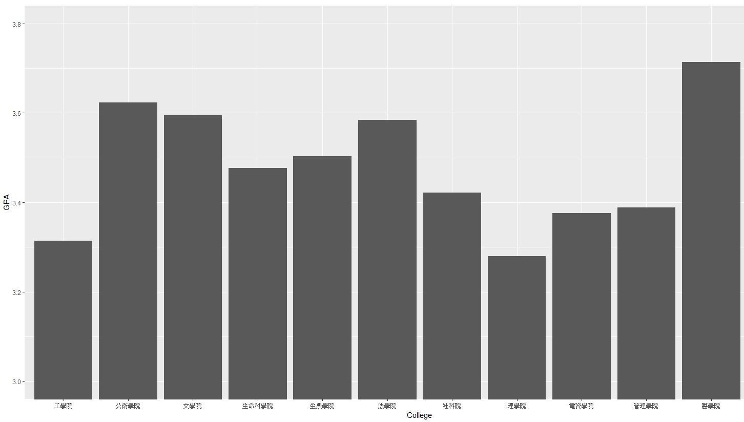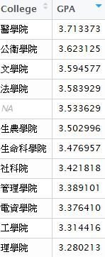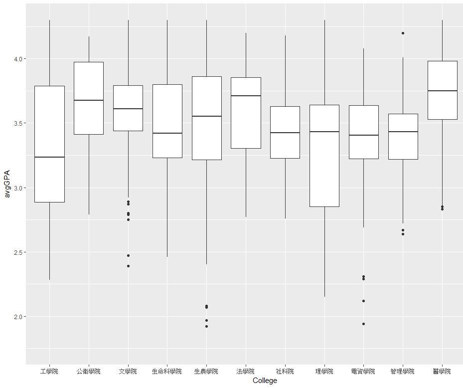 各學院開課平均GPA比較(Modified)