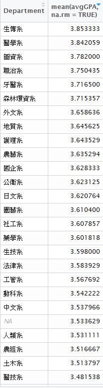 各學院&系所開課平均GPA