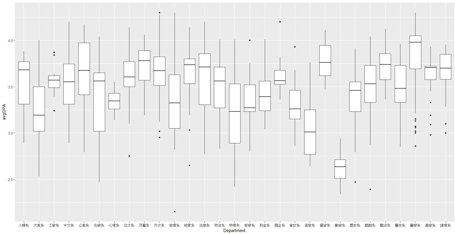 各學院與系所開課平均GPA比較