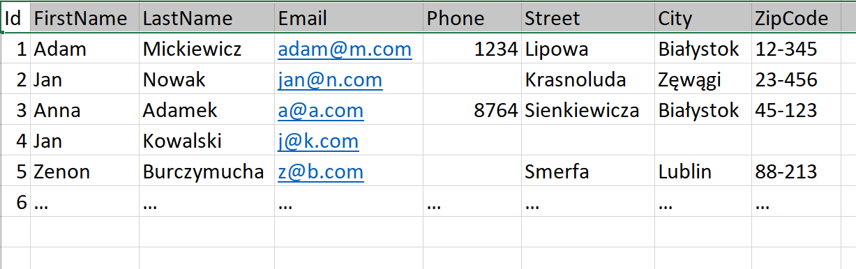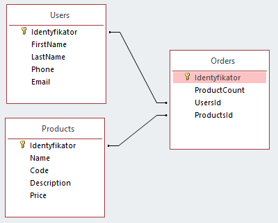 - Każda tabela musi posiadać jedną kolumnę pozwalającą jednoznacznie zidentyfikować i odnaleźć konkretny wiersz. Kolumnę te określa się mianem 'klucza podstawowego tabeli'