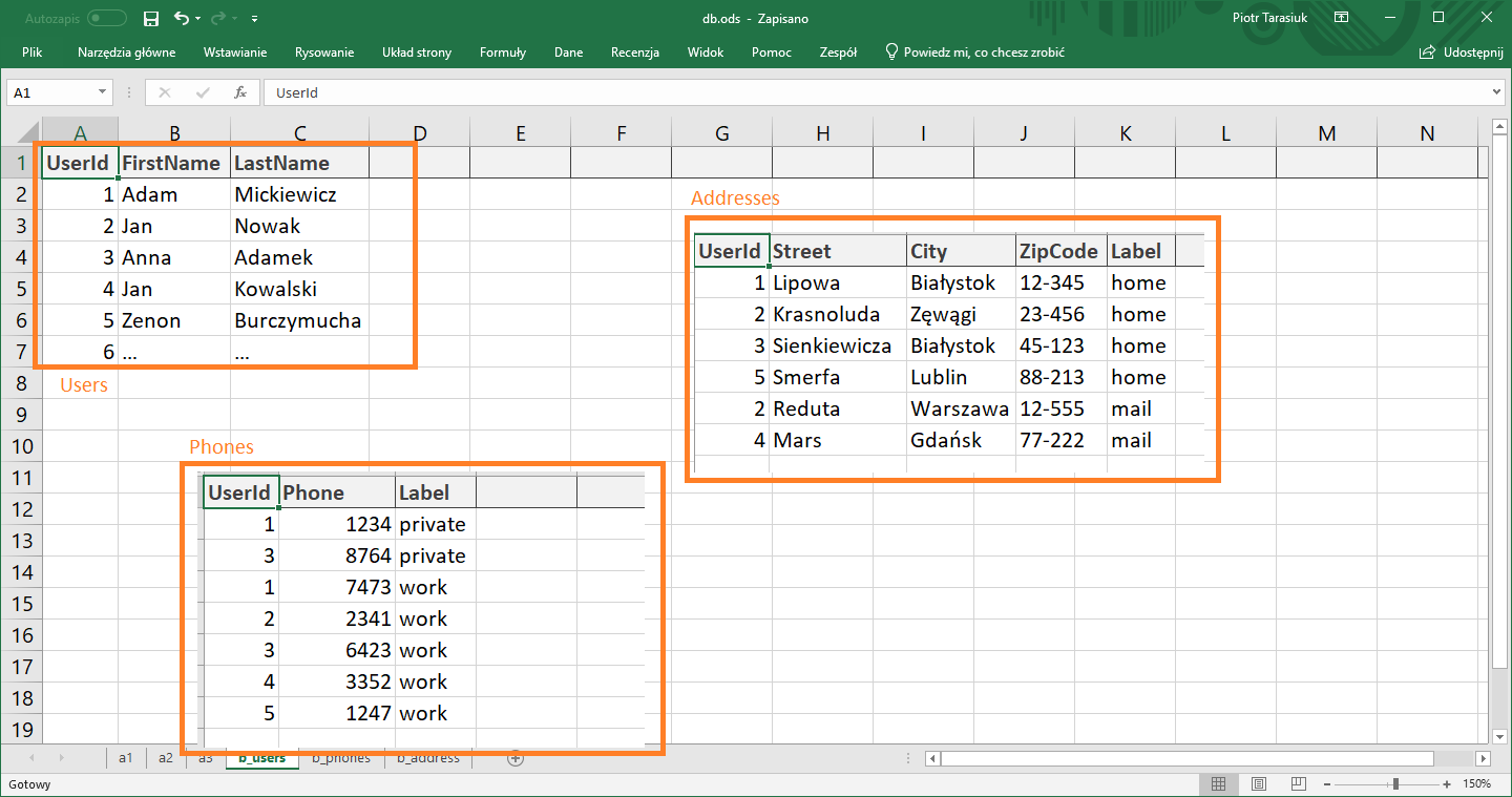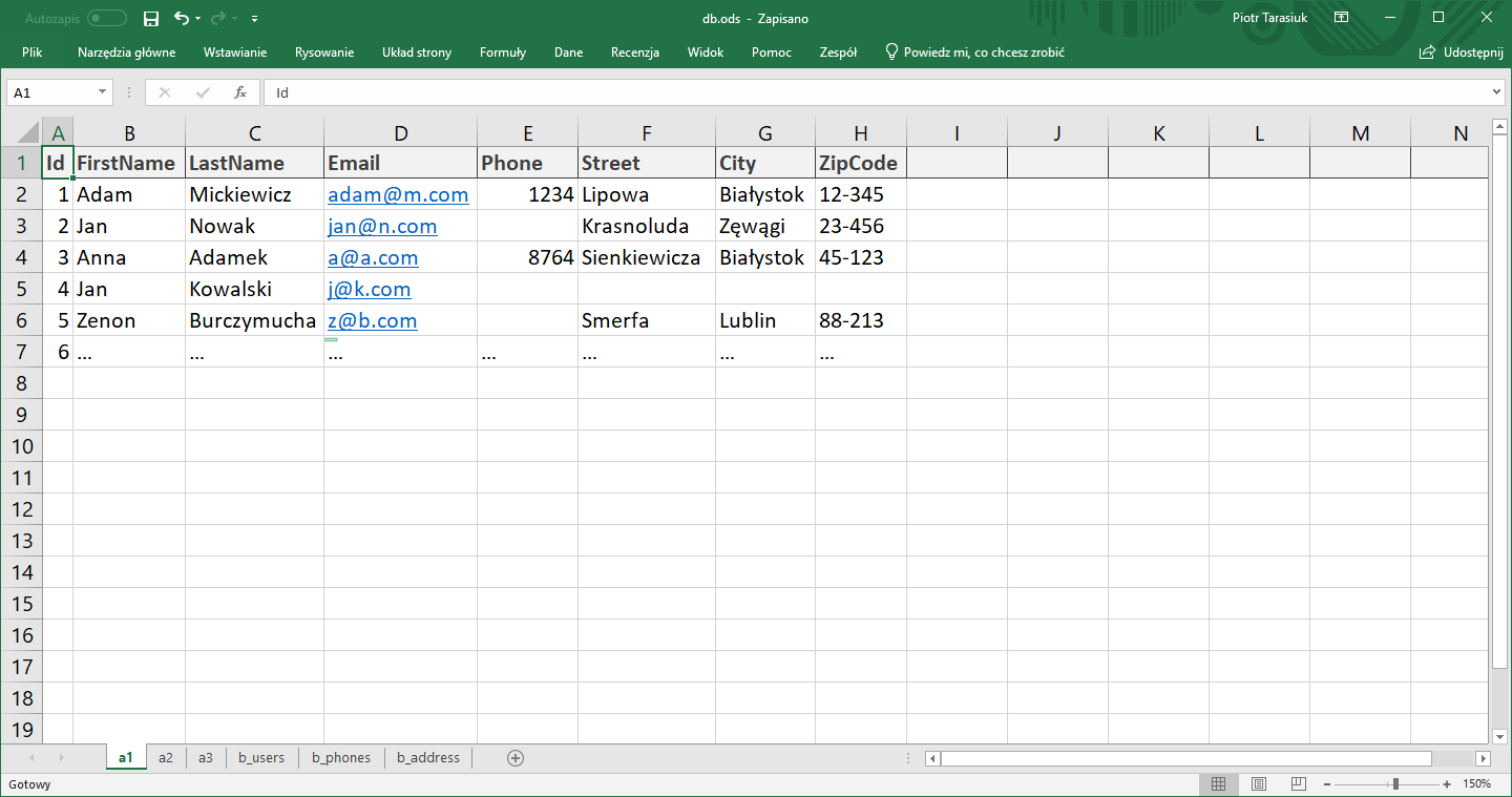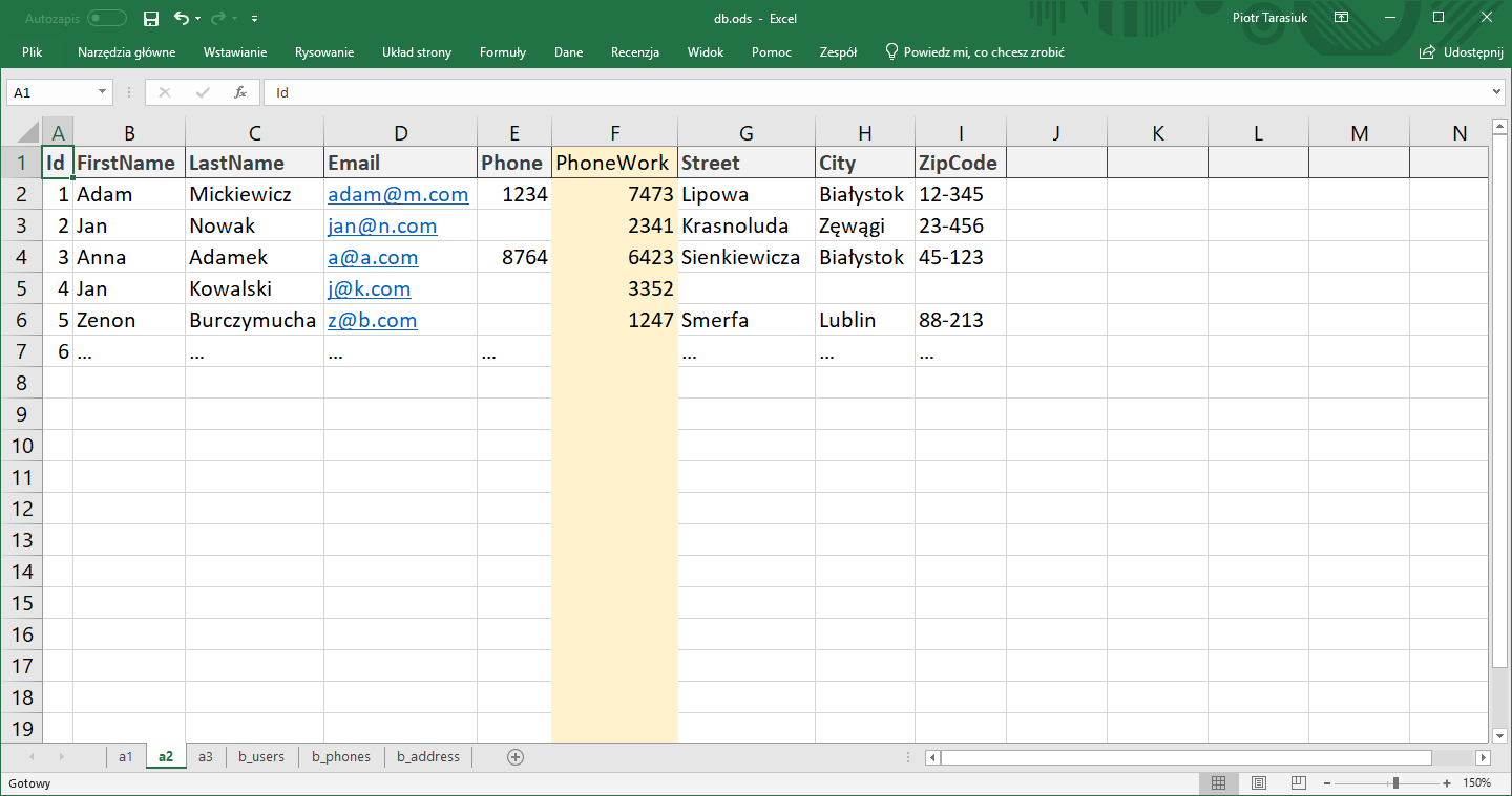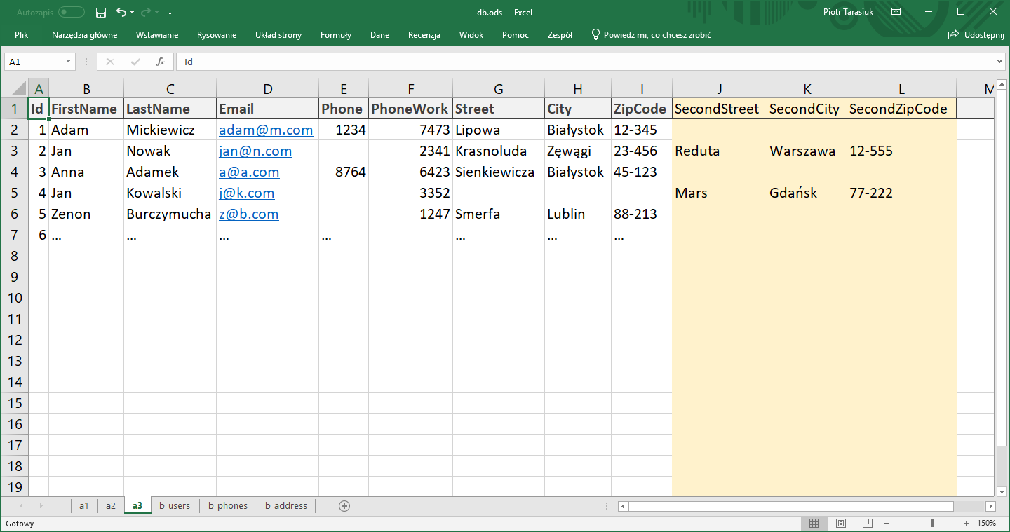 - Po wprowadzeniu danych do bazy, możliwe jest porównywanie wartości z różnych kolumn, również z różnych tabel, scalanie wierszy, gdy pochodzące z nich wartości są tego samego typu.