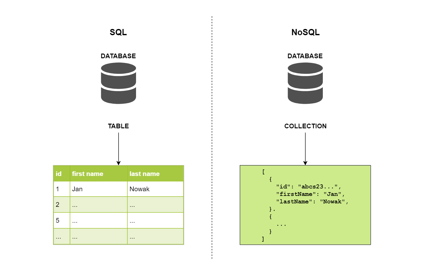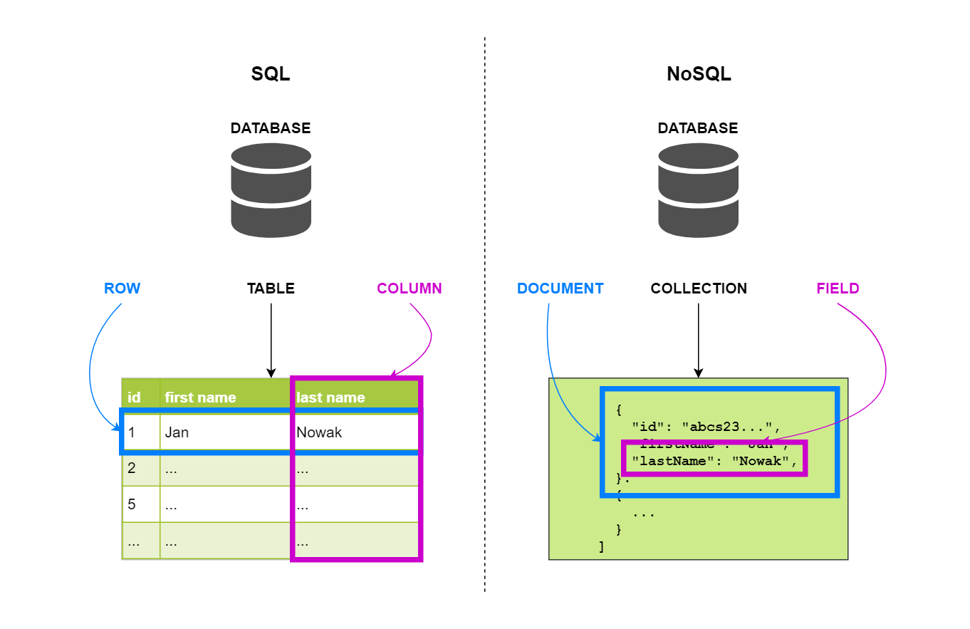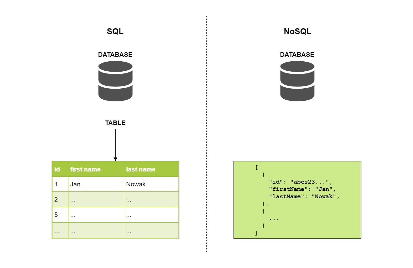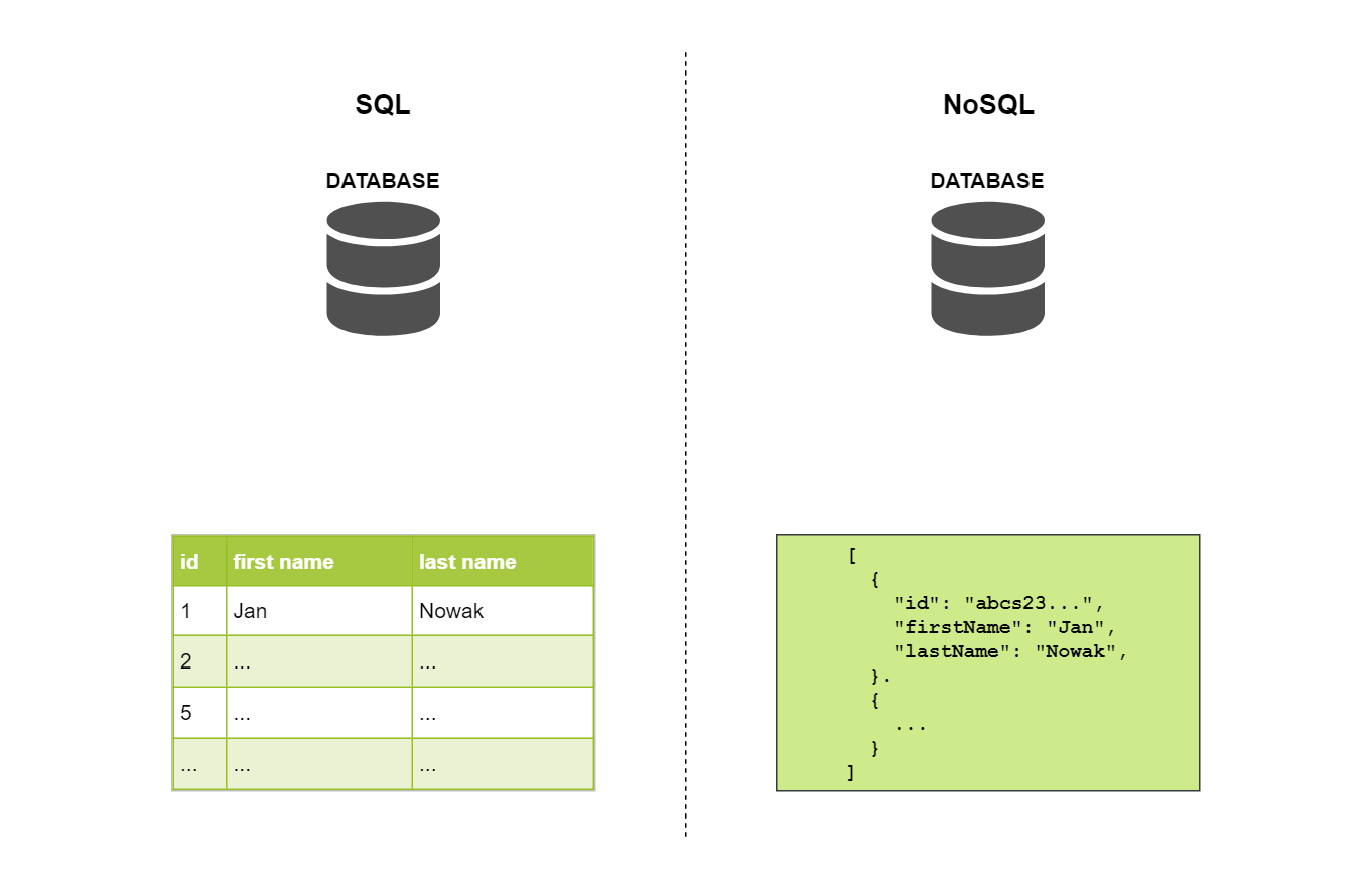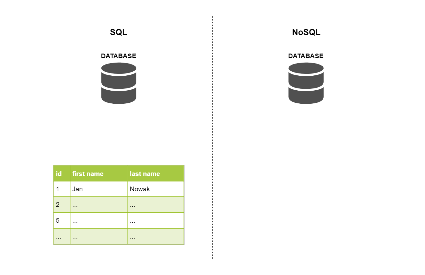 Pod pojęciem bazy nierelacyjnej (NoSQL database) najczęściej rozumie się przechowywanie danych w formie listy par obiektów klucz-wartość, w których nie występują powiązania relacyjne między przechowywanymi obiektami.